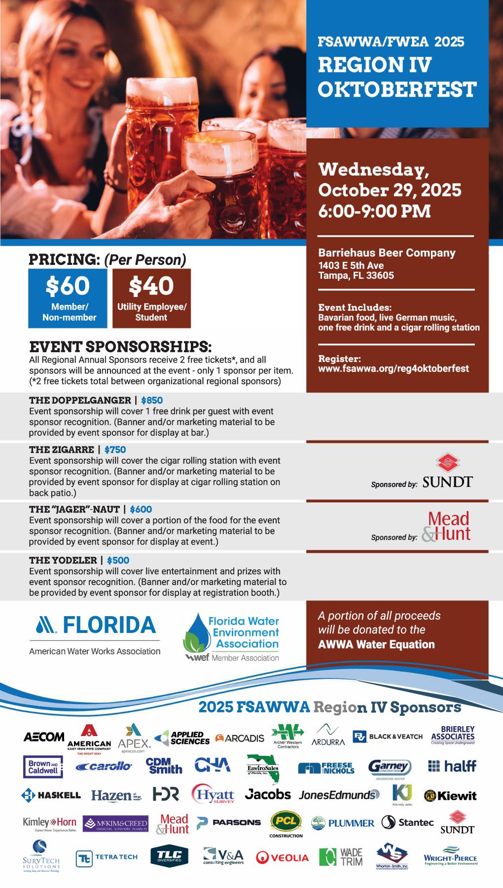 FWEA CFC and FSAWWA Region III sponsors are able to redeem up to two complimentary registration tickets for each organization sponsored. more info...